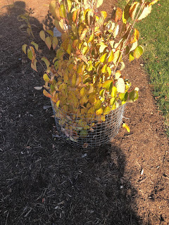 In order to prevent damage by rabbits, I placed wire fencing around certain shrubs. I did this a few weeks back when I started to see some damage.