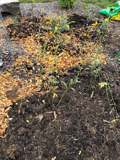 In the upper yard, there are some annual sunflowers still in bloom