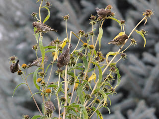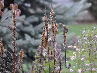 Goldfinch and Pine Siskins- a good many of these have been feeding on the seeding flowerheads