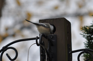 This is not a great pic of a Black Capped Chickadee. We have a few of these birds that are now regulars in the yard.