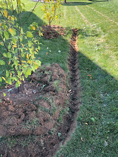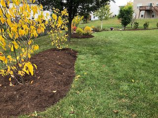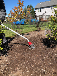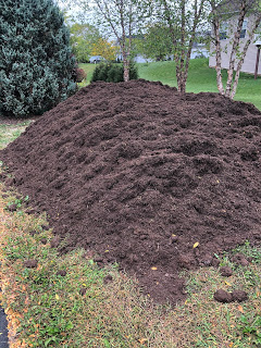One additional task that was completed prior to applying the new mulch was removing some of the decretive bagged mulch that I had applied during the summer to fill a few spots around a few added plantings. This mulch is really more for decorative purposes in that it does not break down quickly and maintains it appearance. Good for use in areas where one is not looking to improve the soil, but not as much for the garden. In fact, this mulch had not integrated at all into the soil and was pretty easy to remove. However in hindsight, I would not have applied it at all. It did nothing to help the soil outside of prevent weed growth.
